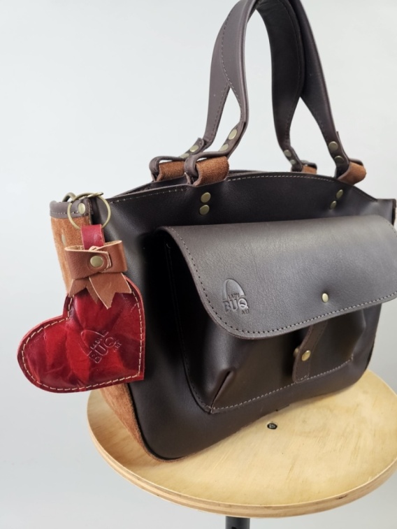 Brelok- serce skórzane z kokardą