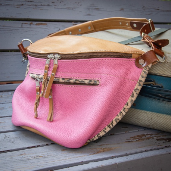 Duża skórzana nerka w kolorze różowym od LadyBuQ.